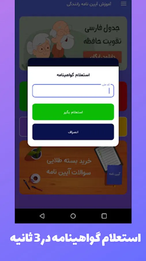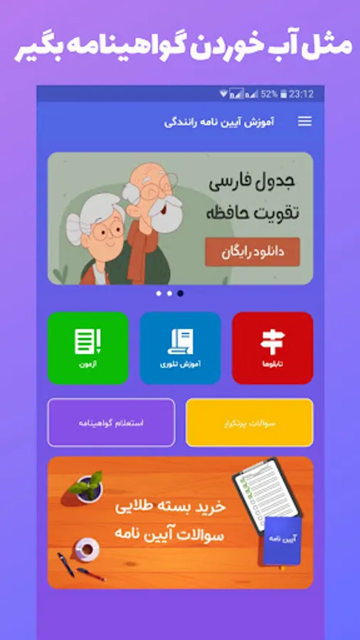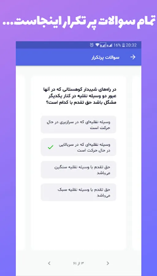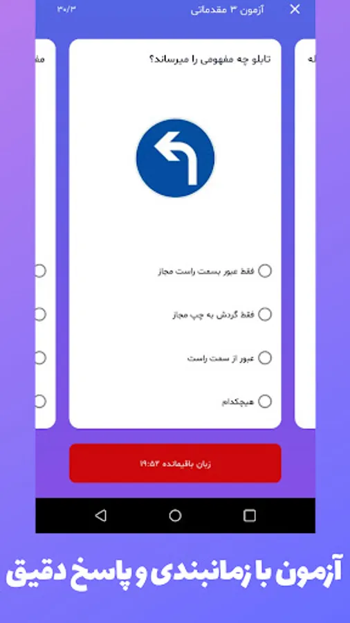 ✅ ✅ این برنامه برای افرادی که قصد قبولی ۱۰۰ درصد در آزمونهای مقدماتی و اصلی آیین نامه رانندگی را دارند، طراحی شده است. با آزمون های اصلی آیین نامه راهنمایی و رانندگی ۱۴۰۲ بطور تضمین شده در آزمون گواهینامه قبول خواهید شد. تمامی سوالات آزمون آیین نامه راهنمایی و رانندگی اصلی ۱۴۰۲ بر طبق آخرین تغییرات کتاب آزمون آیین نامه رانندگی طراحی شده است.