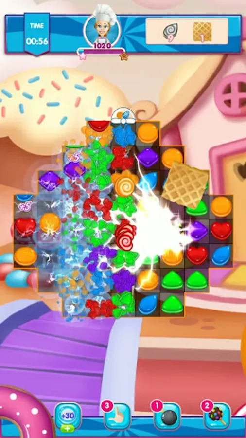 Sweet Symphony also sports new special cookies like the cross, an explosion that clears cookies in diagonal directions!