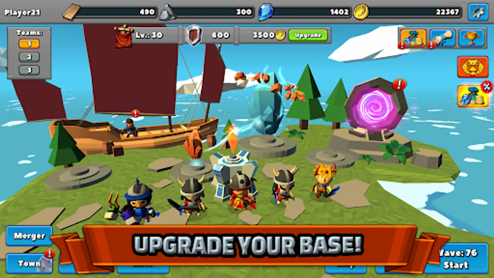 Collect resources and merge your heroes to make them even stronger. Fight your enemies using a variety of heroes with stunning abilities creating a lot of unique ways to play the game. Knights, Mages, Archers... It's all there!