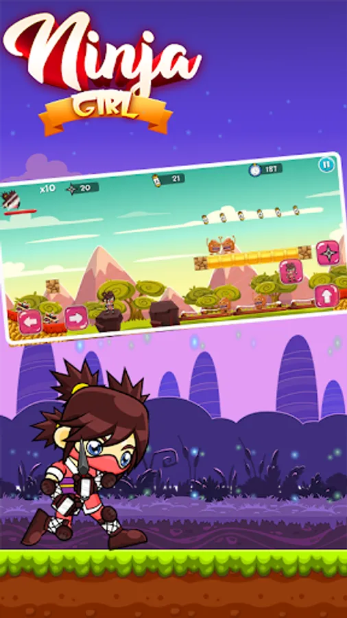 Also, ninja girl can collect some ninja books and hearts for life and rest in the Ninja game adventure collect some balls to dodge enemies jump 2 times to jump high and you can also jump off the enemies to kill them in this adventure game you can manage your Ninja girl to go the final line