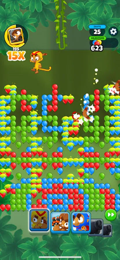 Aim your friendly Monkeys then watch them jump right into the puzzle and use their signature abilities to pop as many Bloons as possible. Merge shots into powerful Mega Monkeys and unlock bonus Hero Monkey shots to help you win!