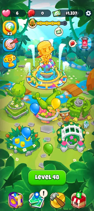 Each victory helps you rebuild the beautiful village scenes that the Bloons disrupted. Place buildings, characters, pets, decorations, and a variety of other interactive, animating objects to make each Monkey Town your own creation.