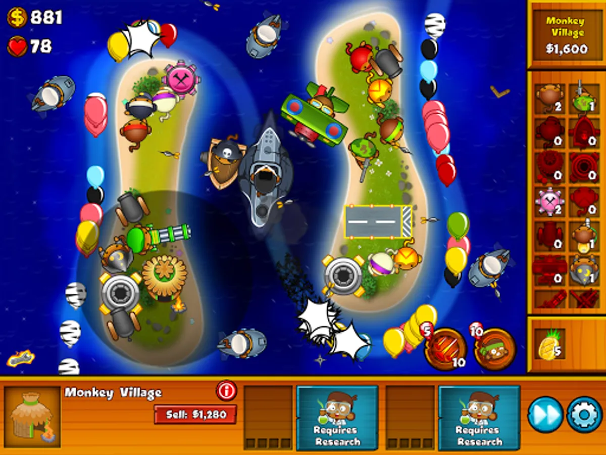 Take back the wilderness from the invading bloon hordes and pop your way from a modest settlement to a thriving metropolis. Attack bloon-infested territory adjacent to your city, win a short tower defense game, and add the captured territory to your city as a space on which to build. Every time you build, your city looks cooler, you increase your power potential in tower defense play, and you open up even more rewards and challenges.