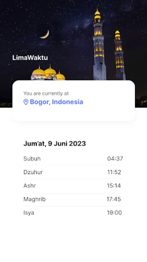 Lima Waktu is a convenient and reliable app designed to assist Muslims in tracking the five daily prayer times: Subuh, Dhuhr, Asr, Maghrib, and Isya. Developed with simplicity and user-friendliness in mind, Lima Waktu aims to provide an effortless and seamless experience for users to stay connected to their faith.