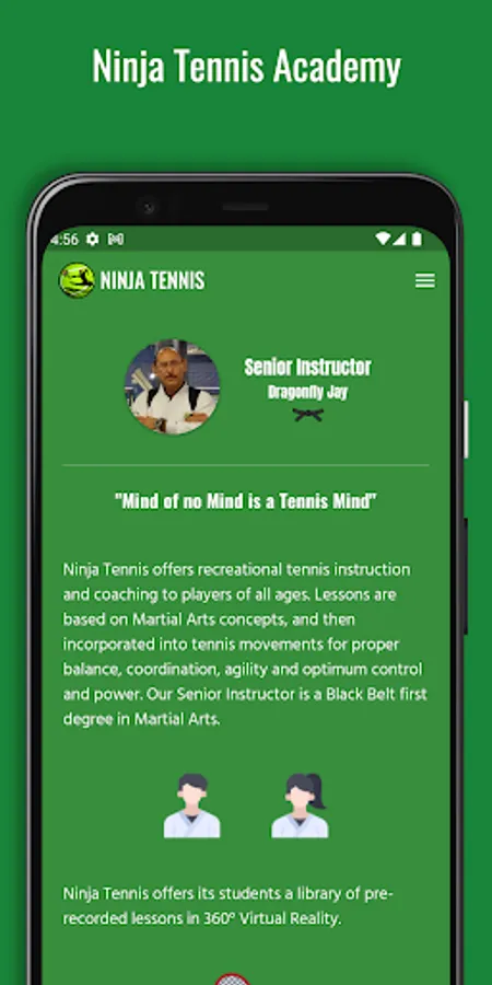 Ninja Tennis offers its students pre-recorded lessons in 360 Virtual Reality. Students have the option to be recored in Virtual Reality for performance analysis/review after the lesson has been taken.