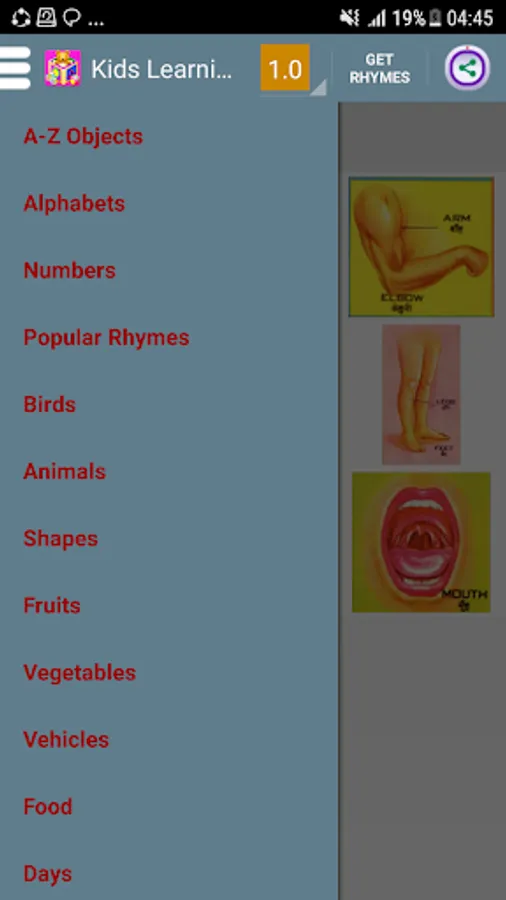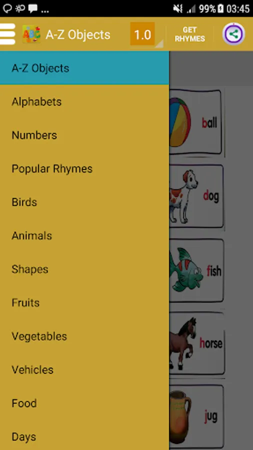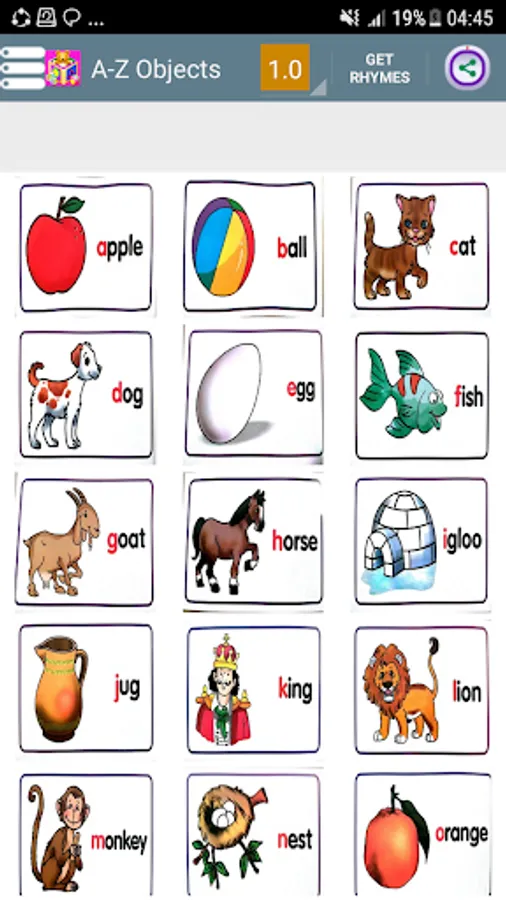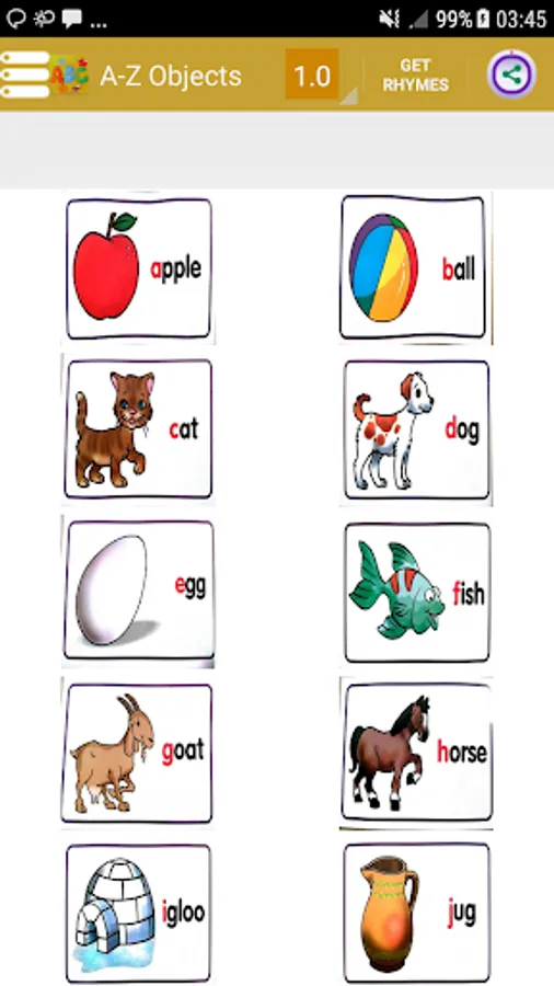 It is a free app where Images of basic english building blocks are shown on screen
