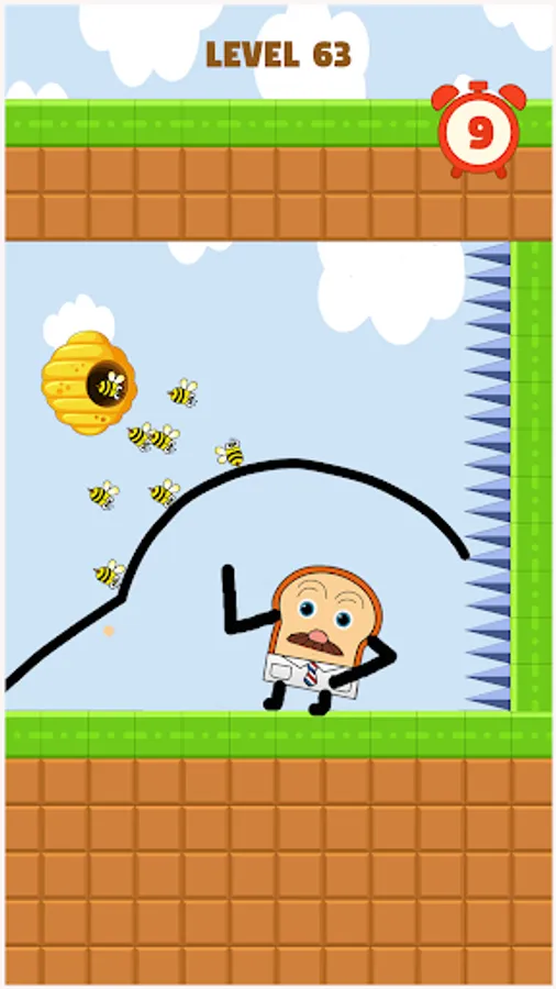 Create a wall by drawing lines with your fingers, conscious of the attack of the bees in the beehive, and the Bread Barbershop! Protect. Protect Bread Boy with a painted wall for 10 seconds during a bee attack. If you hold it, you win the game. Use your brain to store bread.