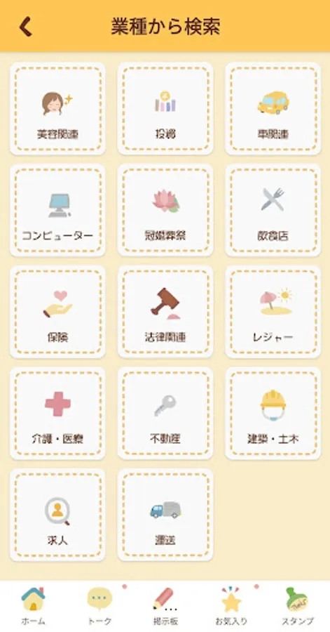 Information dissemination tool for stores of various genres. Each store can independently distribute advertisements by push notifications and issue coupons and stamp cards. You can use the talk function to make reservations and receive questions. By listing store information by industry, you can easily search for the required industry and view advertisements.