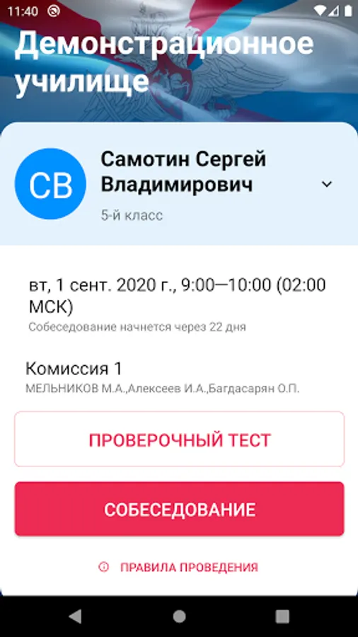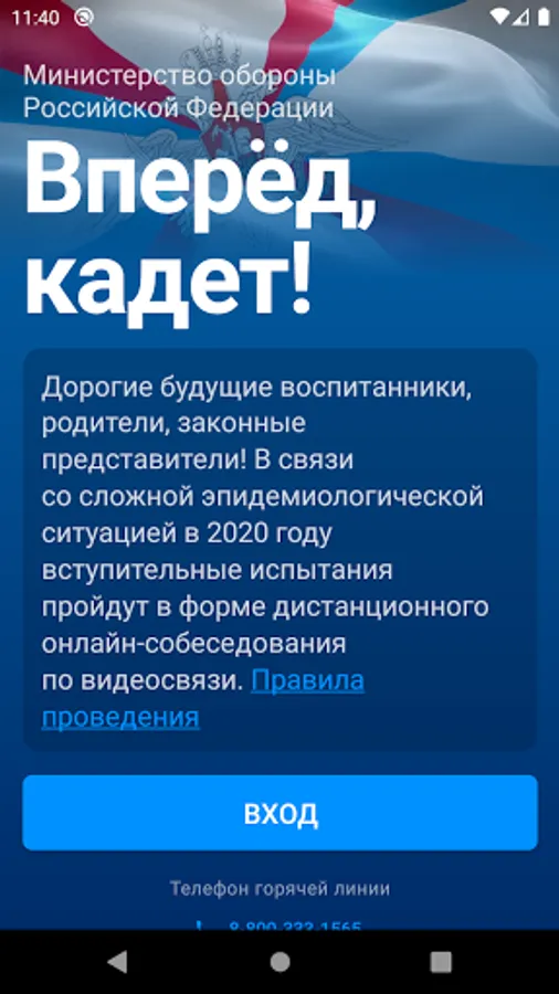Application "Forward, cadet!" created to conduct distance admissions tests in educational organizations of the Ministry of Defense of the Russian Federation.