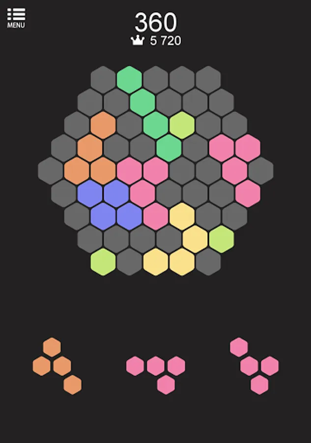 Drag the hexagon into the scene, as long as all the small hexagons combining just full of a straight line, you can eliminate!