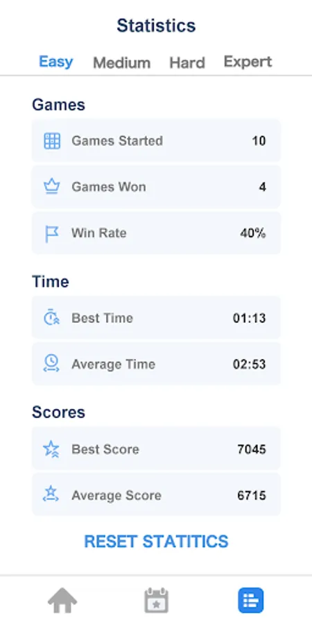 -Statistics: track the progress of each difficulty, analyze your best time and other achievements