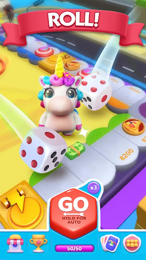 This is a multiplayer online interactive board game. Roll the dice on the magical board, collect rent, attack Money Man's city, raid your opponent's bank, and become the strongest king in Beast GO!