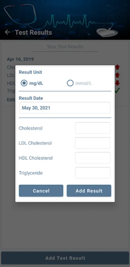 - Storing, editing and deleting your Lipid Panel test results (Cholesterol, Triglyceride, LDL and HDL Cholesterols)
