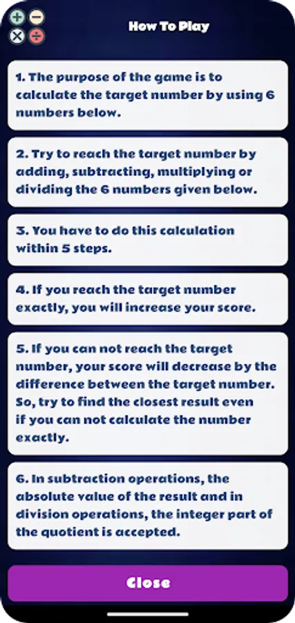 Improve your calculation speed, train your brain and enjoy a calm but engaging puzzle game. Reach the target number and feel the victory!