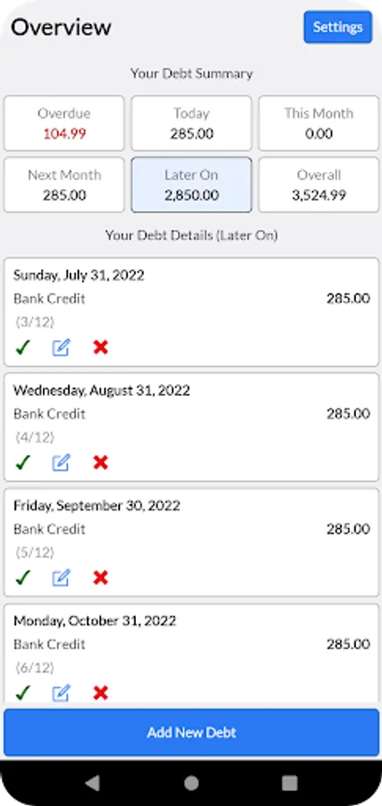Quickly create debt categories and easily record your debts by category. Receive notifications for your debts that are overdue or due at a time you specify.