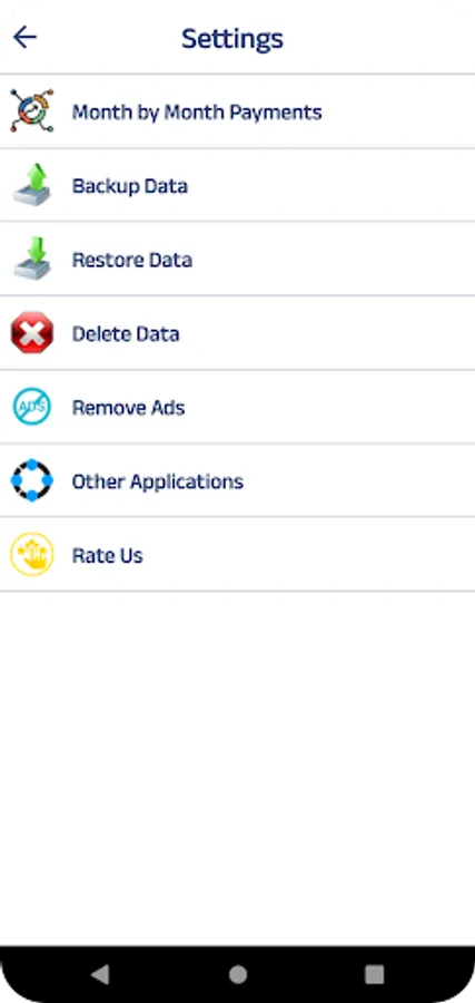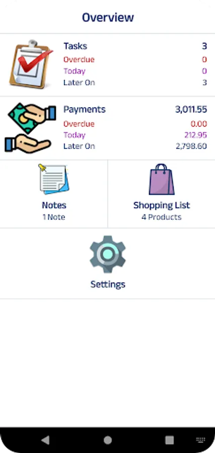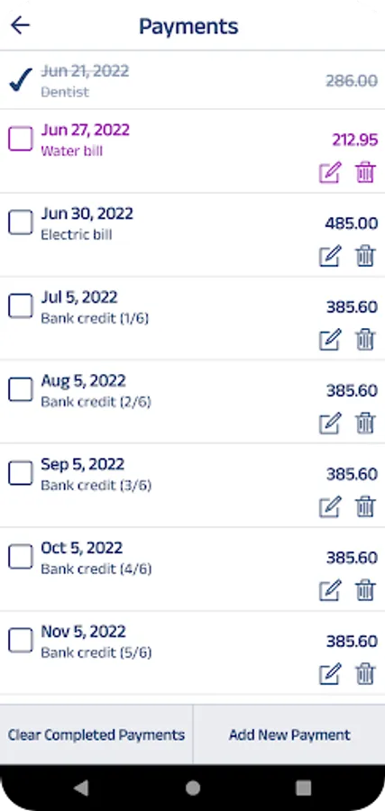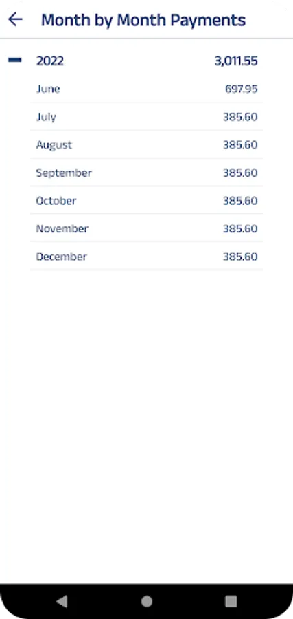 Payments List where you can follow your upcoming payments order by due dates. Also you will be able to see your total upcoming payment amounts month by month.
