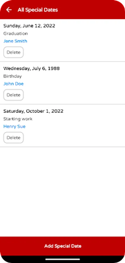 Special Dates Screenshots