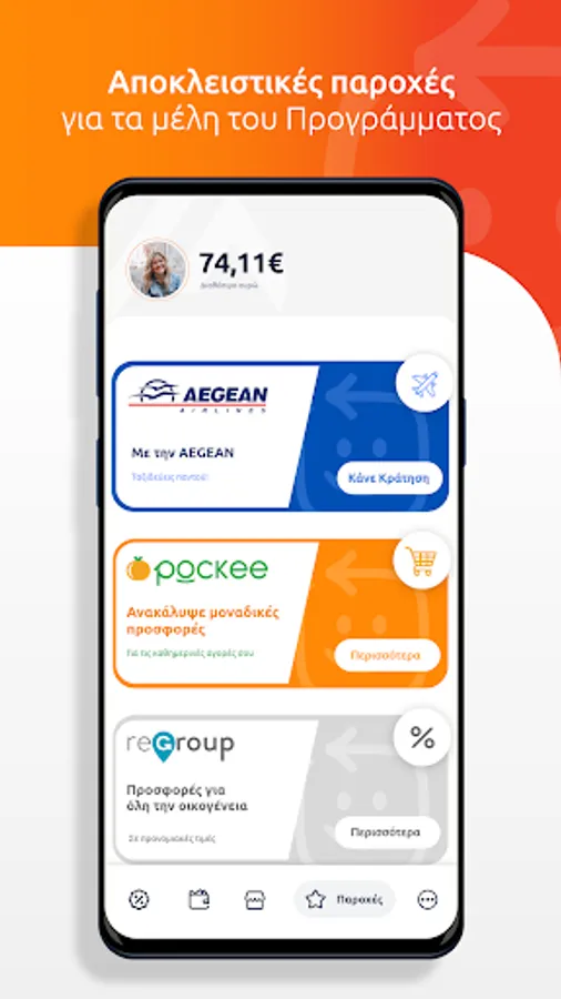 - Την ενότητα της Regroup για άμεση πρόσβαση σε προσφορές.