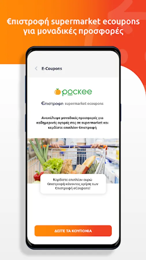 - Την ενότητα €πιστροφή Supermarket ecoupons που κερδίζεις ακόμη περισσότερα ευρώ €πιστροφή από τα ψώνια του Supermarket.