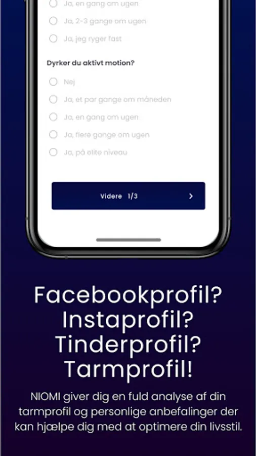 Intestinal health comes through a healthy and nutritious lifestyle that we all know is hard to adhere to 100% of the time. Therefore, the right knowledge about the best foods for just you, here and now and the right supplement products can be a good help - so it all becomes a little easier to go to in a busy day. NIOMI is developed for you who want an insight into your intestinal profile and health.