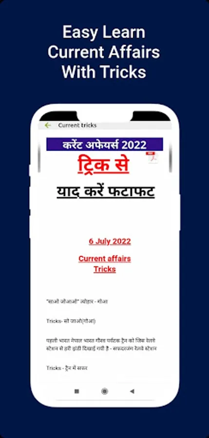 This app help in learn current affairs with tricks for any exam. Explain by point in this app -