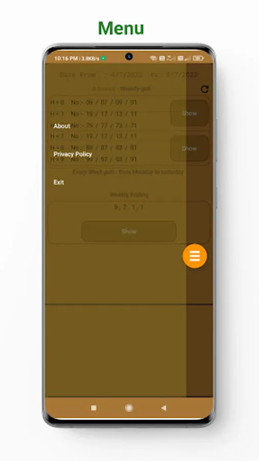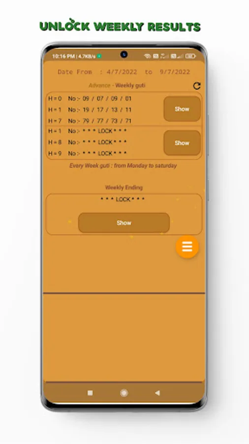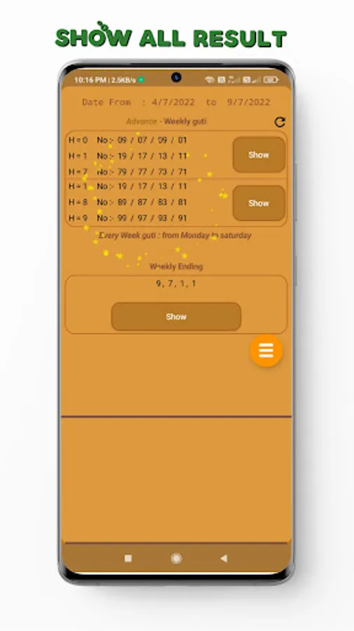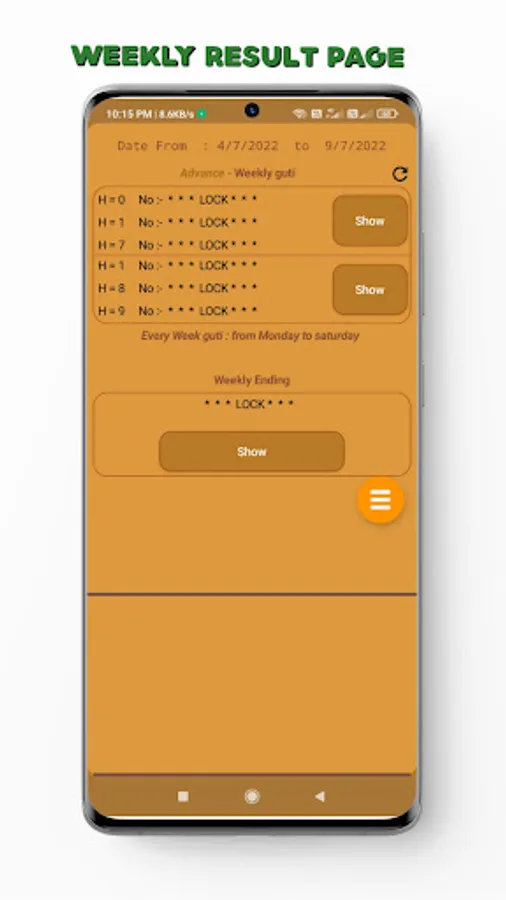 Shillong teer weekly result app show one week advance result, that is from Monday to Saturday.