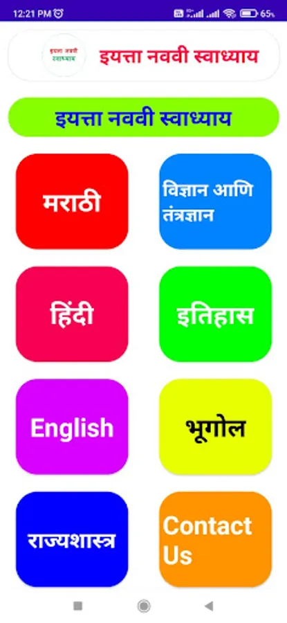 In Iyatta Navvi Swadhyay app available a marathi hindi english itihas vidnyan and bhugol swadhyay.