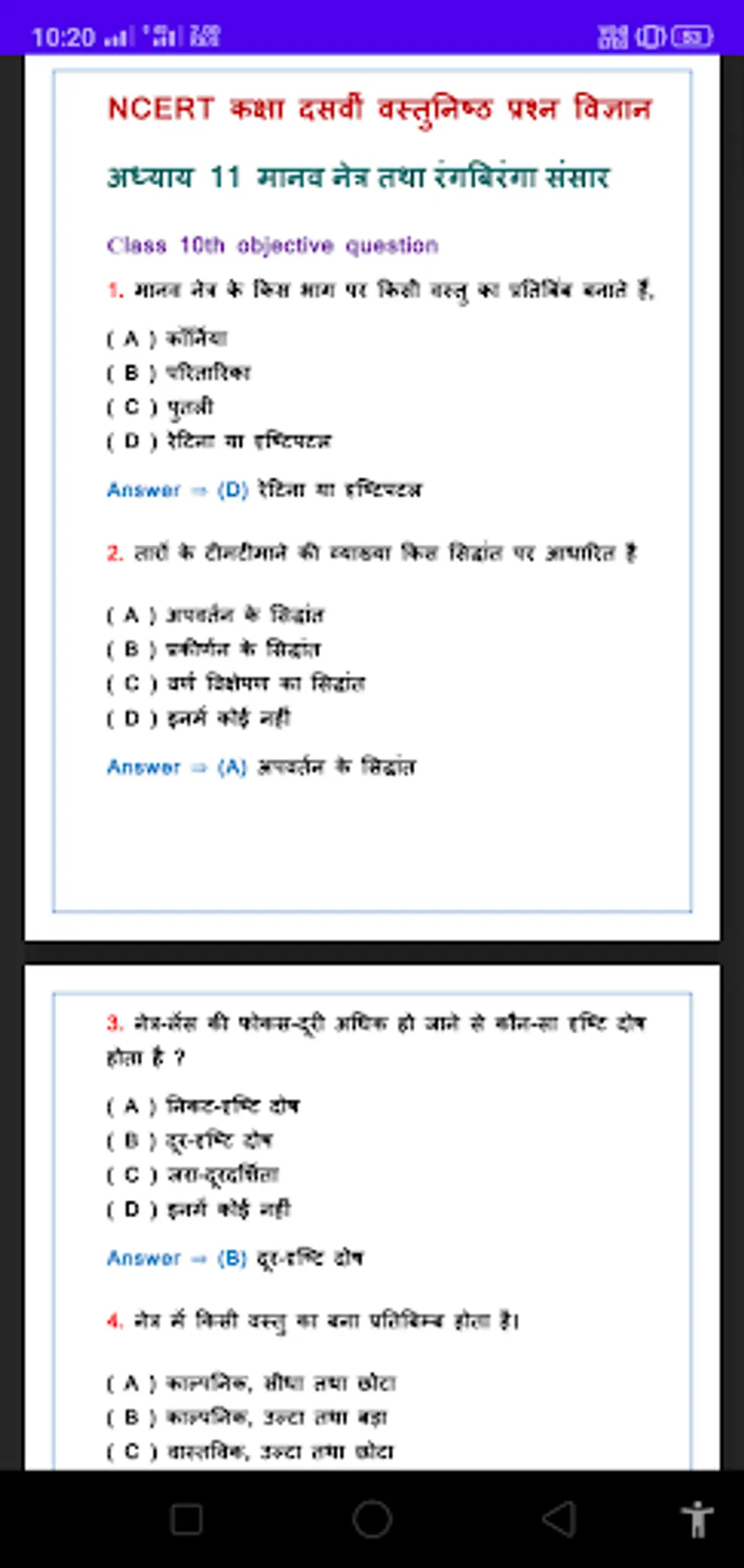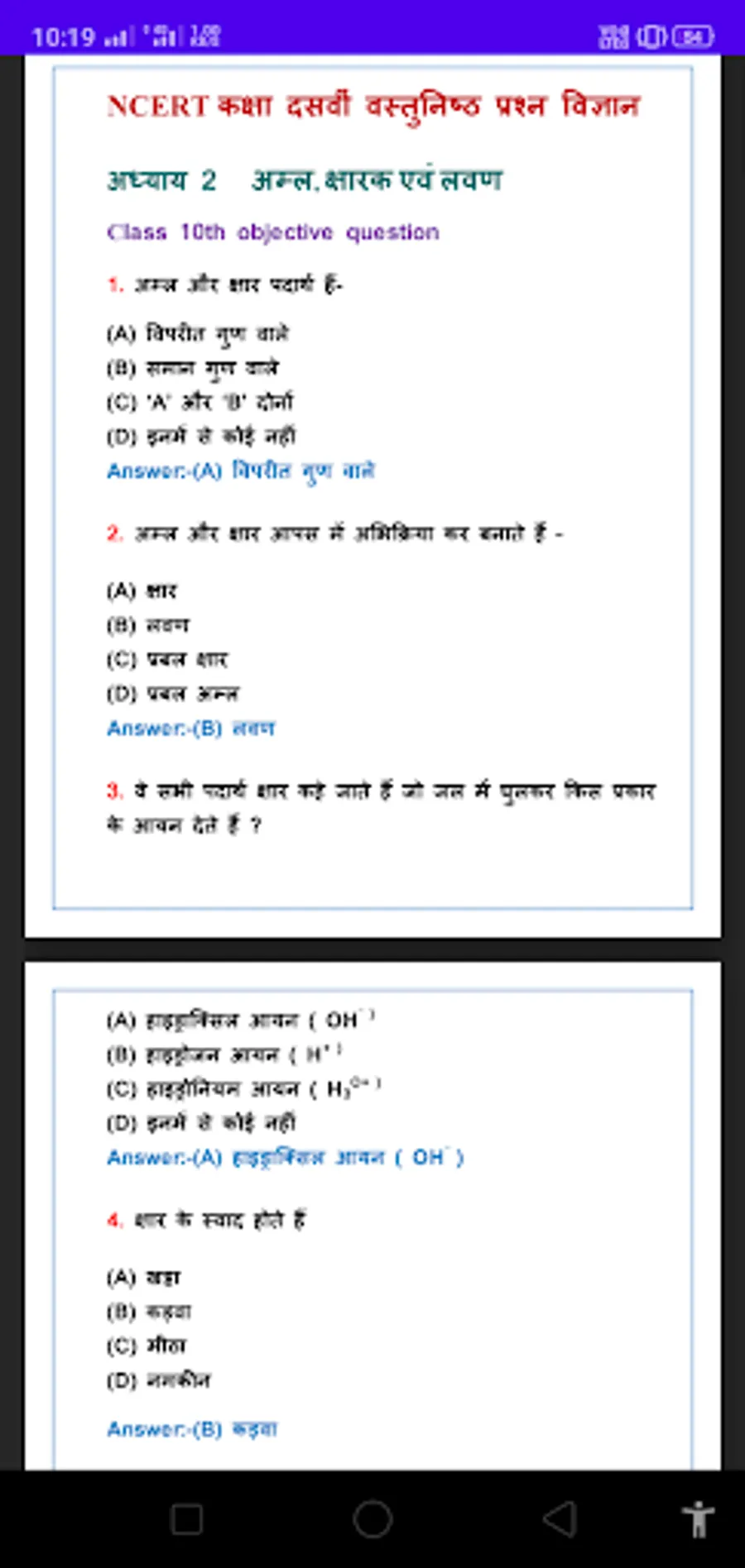 This app is developed for the students of class 10th hindi medium , and contains the objective question of ncert science book.
