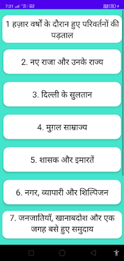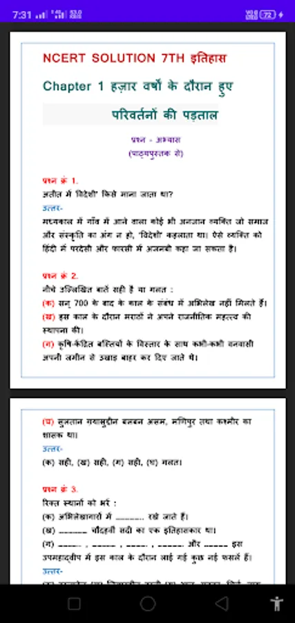 This app is developed to provide the solution of class 7th mp board social science and the contains the solution of the text book questions and also contains the extra question for your understanding .