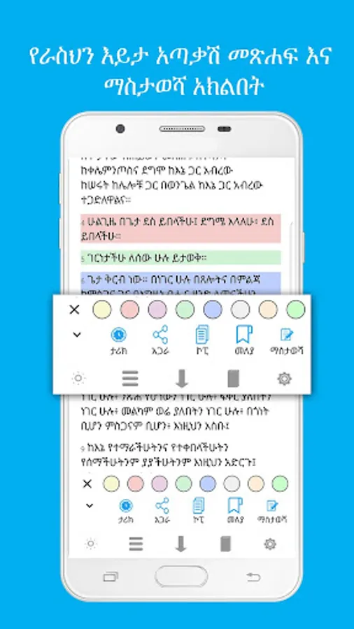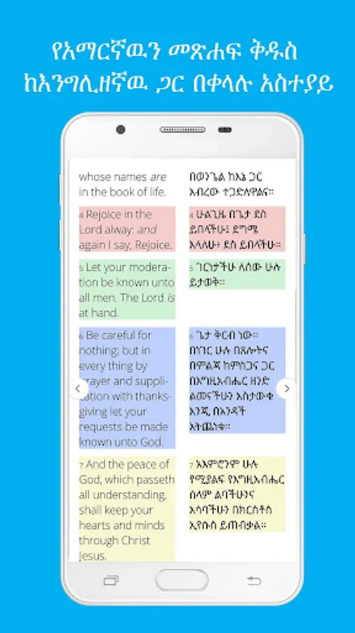 Holy Bible in Amharic is fully packed with an android latest technology and user-friendly. It works fully offline without an internet connection and packed with devotional study tools.