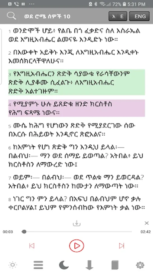 Apart from your favorite Amharic Bible, access other English Bibles like KJV, NET, BBE without an internet connection.