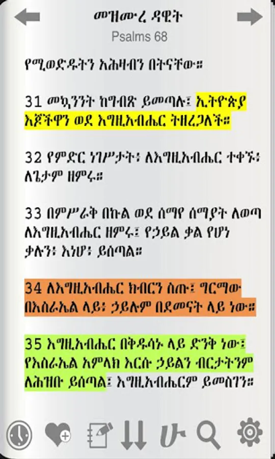 A simple, yet a powerful design allows users to easily read Amharic (Ethiopian) Bible, navigate, highlight important verses, bookmark and take notes.