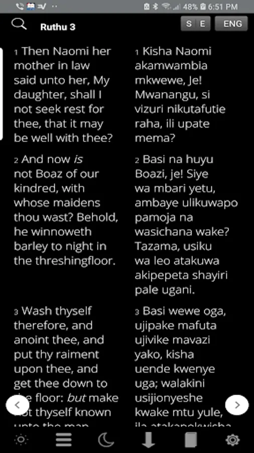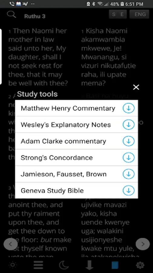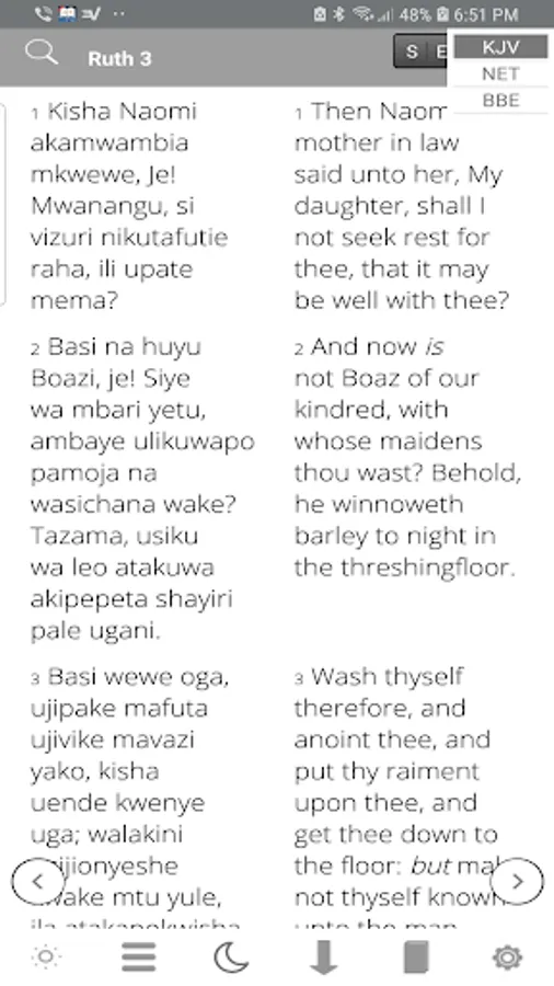 Apart from your favorite Swahili Bible, access other English Bibles like KJV, NET, BBE without an internet connection.