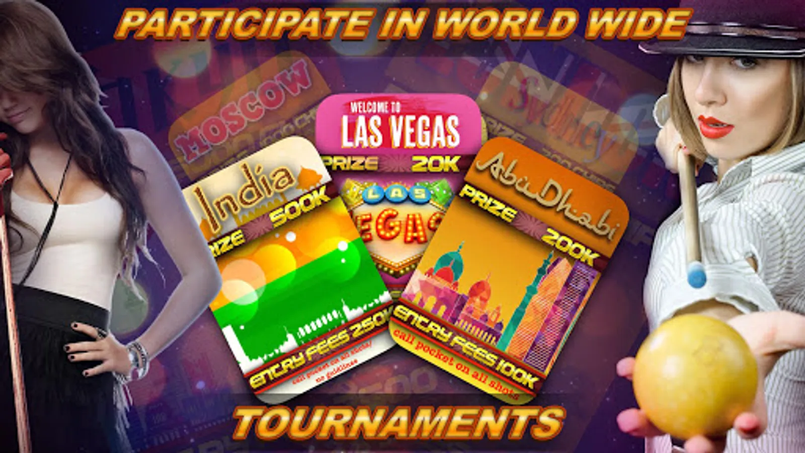 - Play 1-on-1 and 8 player tournaments in online 8 ball and online 9 ball
