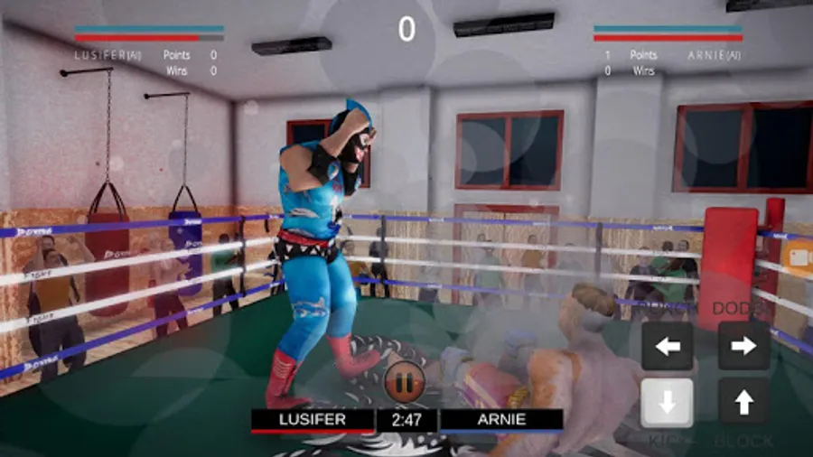 Make your own kick boxing fighters through 1000 of character customisation setup. all free of cost. Try your best to beat your opponents. Use all your skills like punching, kicking, blocking and super kicks and takedowns to get your opponents down on the ground.