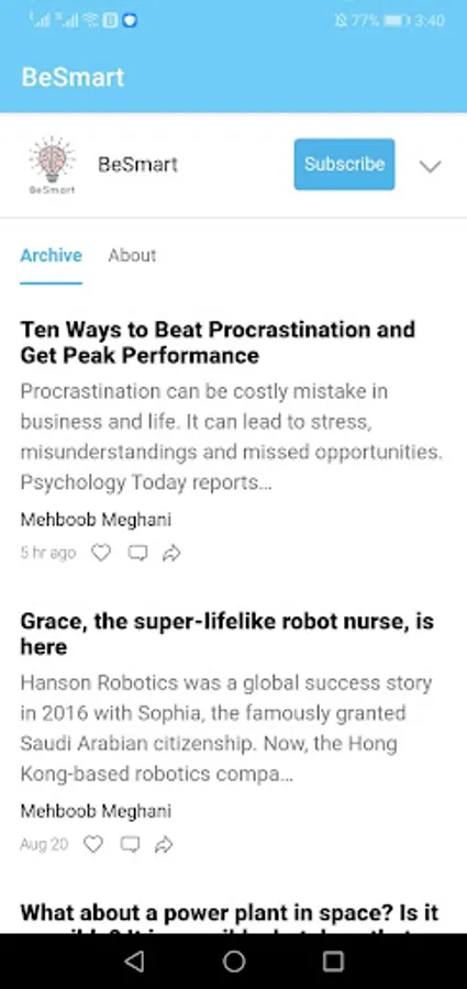 Hence, BeSmart was born. The idea is to share one piece of engrossing content each day that takes less than 5 minutes to read!