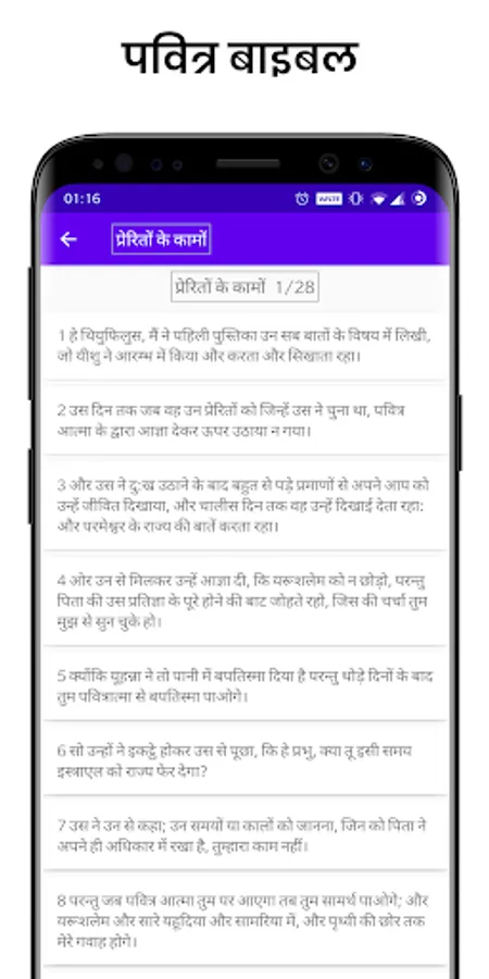 We are proud and happy to release the first version of Hindi Bible (Pavitra Bible) in android for free. This app contains both "Old Testament" and "New Testament" in Hindi. This is our first effort in bringing you bible in Hindi. We sincerely hope that this app will rejoice you.