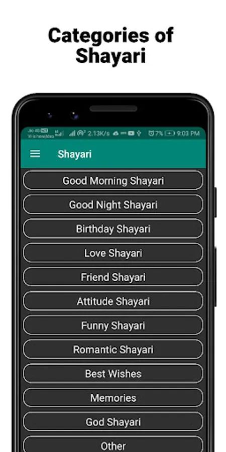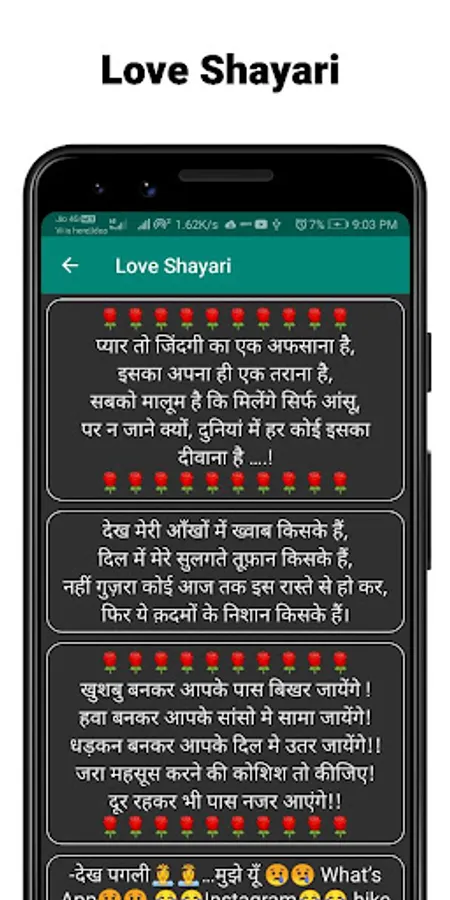 Nirmal Labs attempts to equip you with the power of expression through Shayari be it any occasion, time of day, festival, social event mood, feelings(love, rage, pain, attitude, devotion, strength ), memories, or sarcasm and fun.
