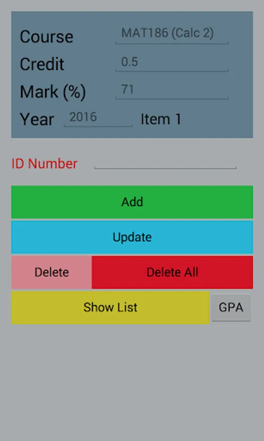 - Allows user to add Course, Credit, Year, Grade and Season (Fall, Winter or Summer)