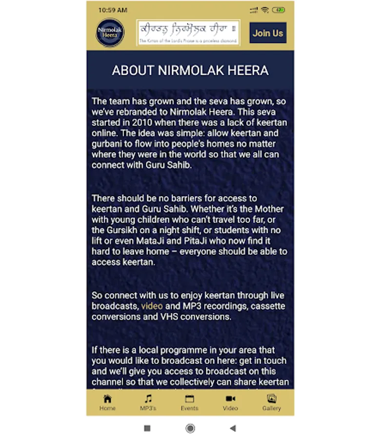 The Nirmolak Heera app has been designed to allow you to search, play and download keertan, katha and paath tracks easily.