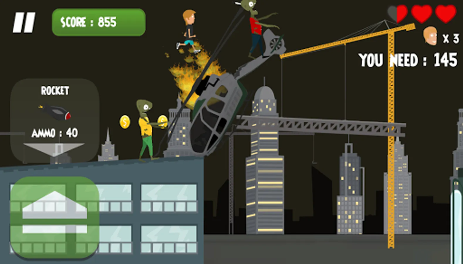 This game of Zombies is a mix between the Shooter Classics, where your objective is to shoot different aims, and Adventure Games, where we have to dodge obstacles, fight enemies, pick up coins and get as many points as possible.