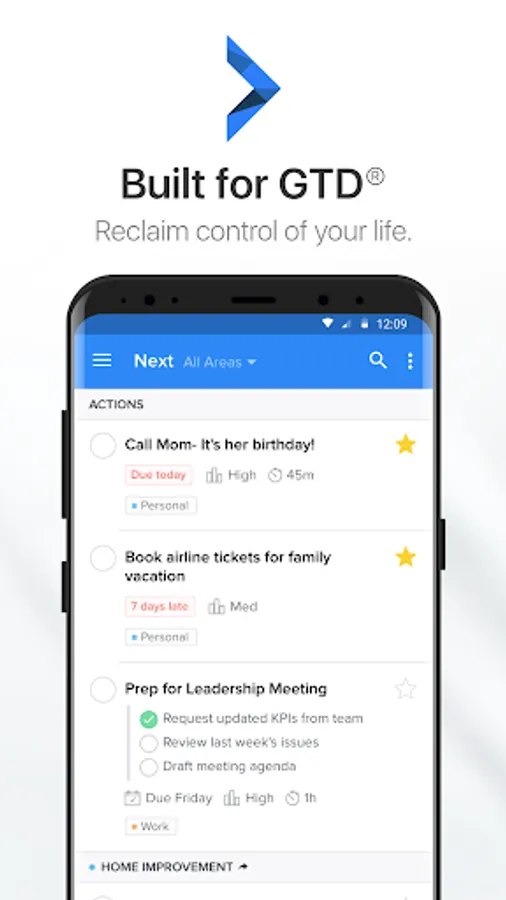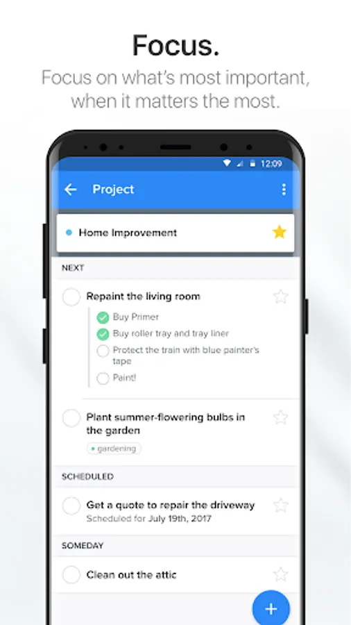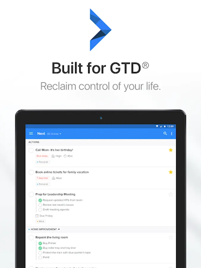 * Focus on what matters most right now with smart views designed for your clarity with GTD.