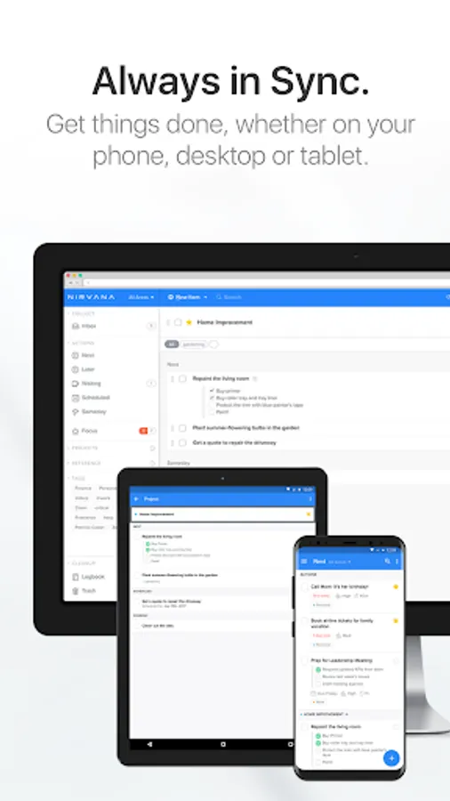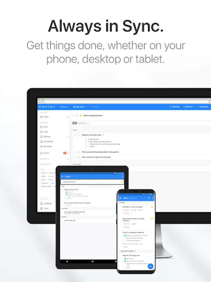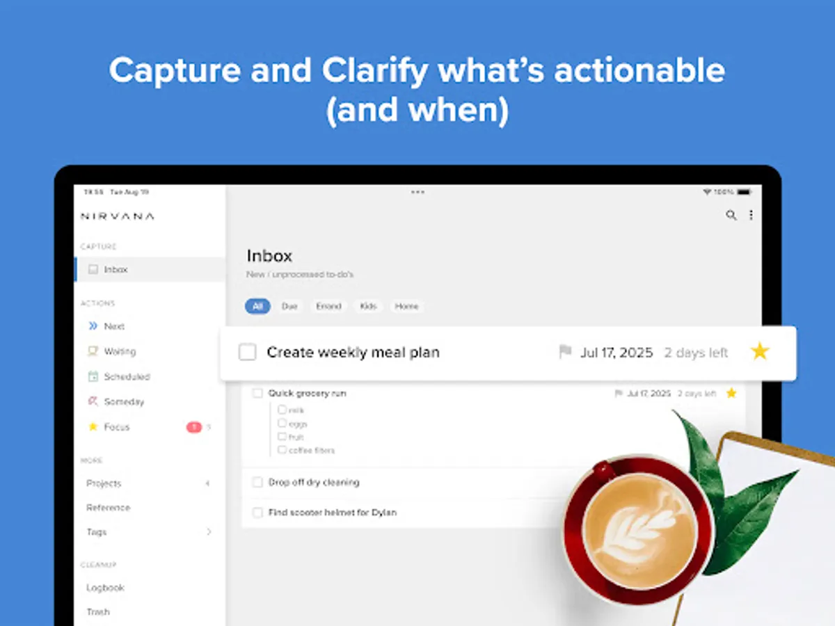 Enjoy a mindful, intentional approach to getting things done, where everything has its place, and you can approach each task with calm, and purpose, maintaining a sense of balance and reducing the stress of daily life.With GTD and a focus on mental clarity, Nirvana helps you get things done—without the clutter.