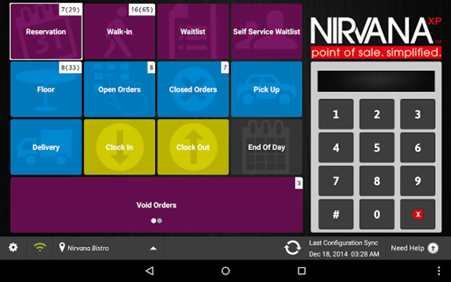 Nirvana XP is a simplified, intuitive and truly integrated mobile Point of Sale application platform like none other. The current product offering is focused on full service restaurants, quick service restaurants, cafes, coffee shops, salons and similar businesses utilizing mobile and tablet devices.