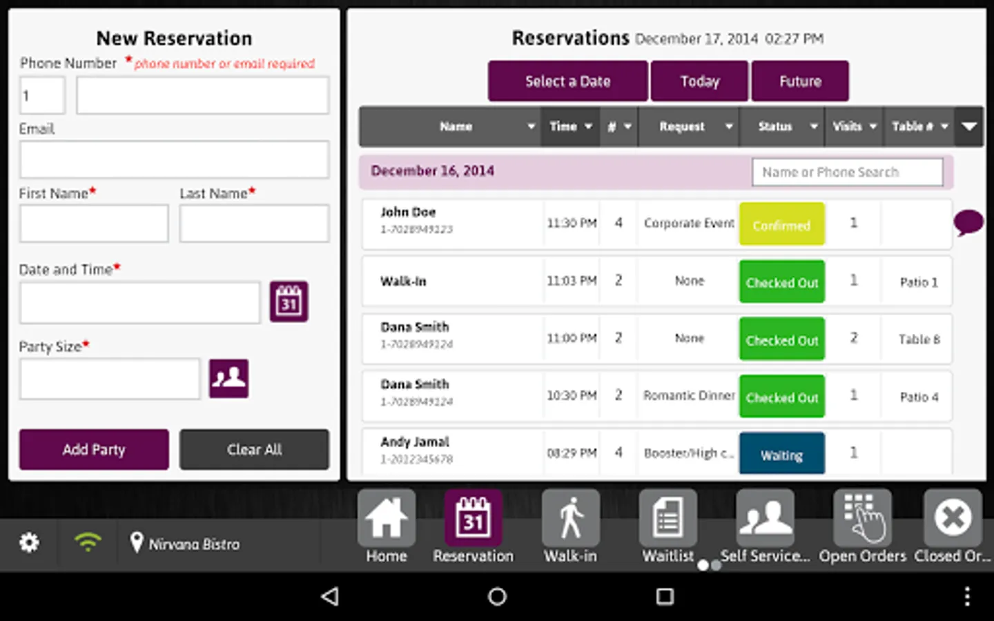 Nirvana XP enforces operational processes delivering bottom line revenue growth and return on investment that encompasses customer experience (In Store, Web and Mobile), Dining Floor and Ordering Process Effectiveness & Accuracy, Guest Feedback & Experience Tracking, Forecasting & Planning, 24x7x365 Access (Any Location, Any Time & Anywhere), Management Reporting & Analytics.