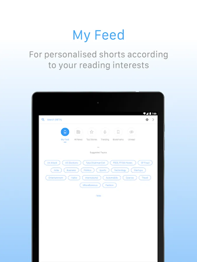 • Inshorts intelligently learns your preferences as you swipe, and displays stories personalised for you in ‘My Feed’