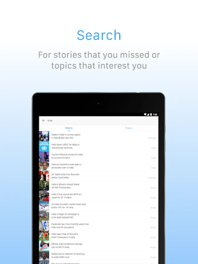 It doesn’t matter if you’re looking for Bollywood stories, BCCI news, science talk or political news - Inshorts brings all of the day’s news together in one beautifully simple, elegantly quick interface.