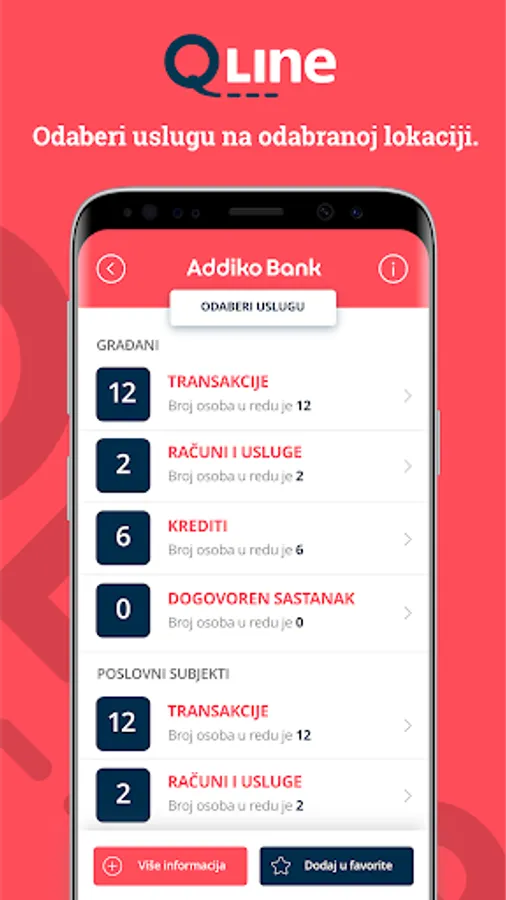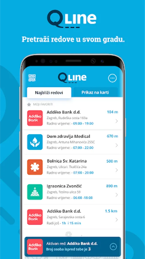 QLine is a mobile application that helps you organize and save time. If you go to a bank, a doctor, or take a kid to a playroom, see how many people are right now and take your number while you are at home or on the way to the destination.