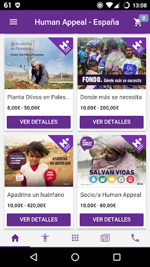 From this application you will be able to know and collaborate in the projects that we develop around the world, and that include help to the emergency and sustainable development.