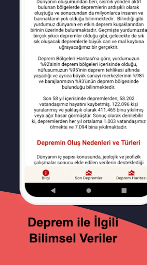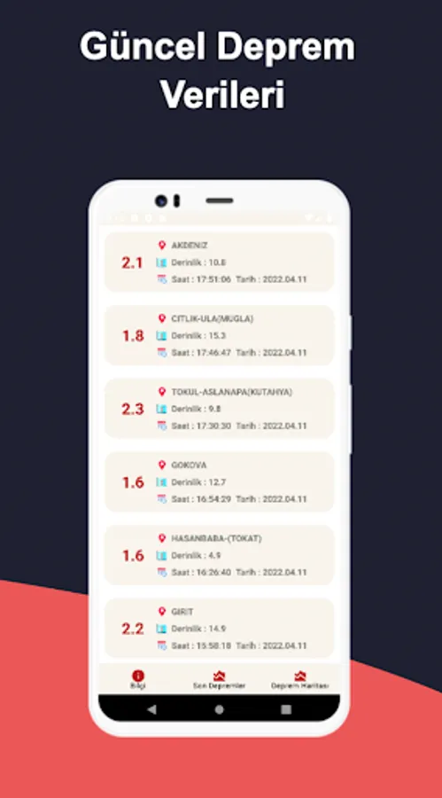 You can view the latest earthquakes in Turkey with the most up-to-date data, examine the regions from the earthquake map in the application, and get scientific information about the earthquake from the information section.